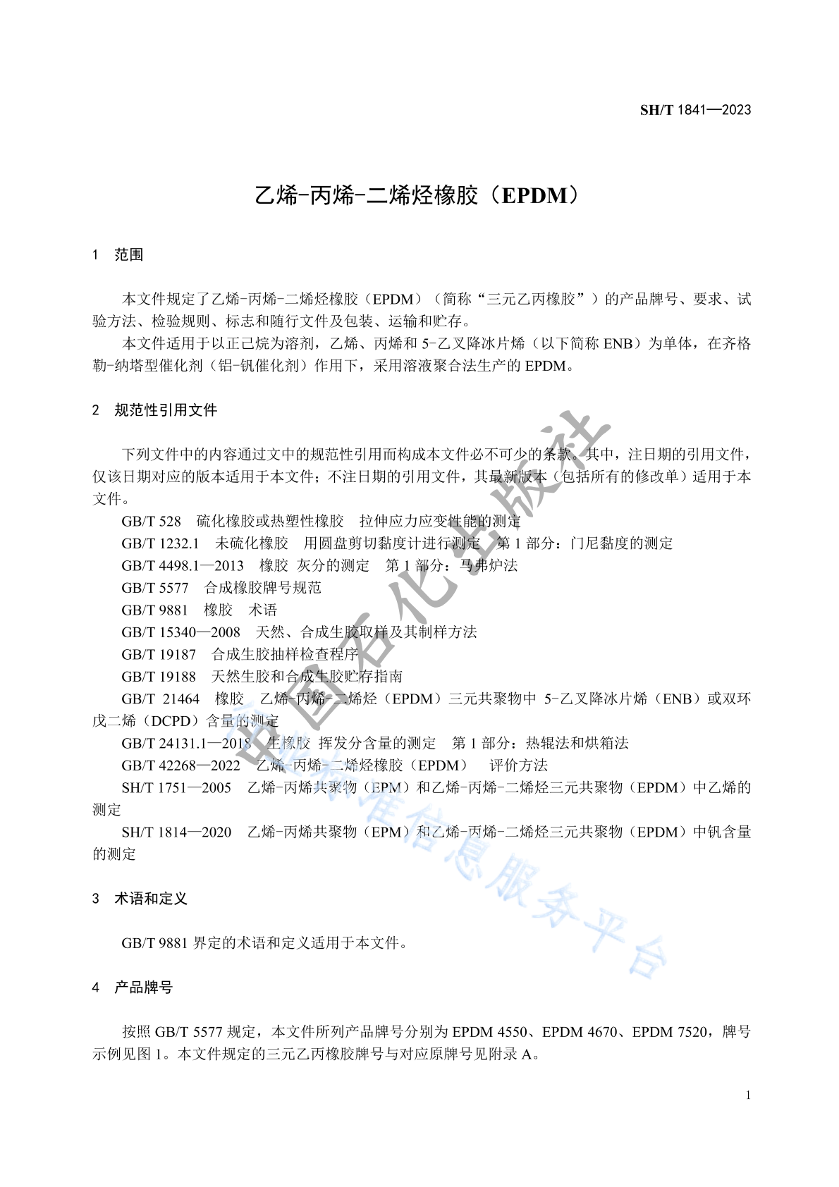 SH/T 1841-2023 乙烯-丙烯-二烯烃橡胶(EPDM)