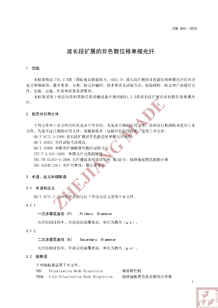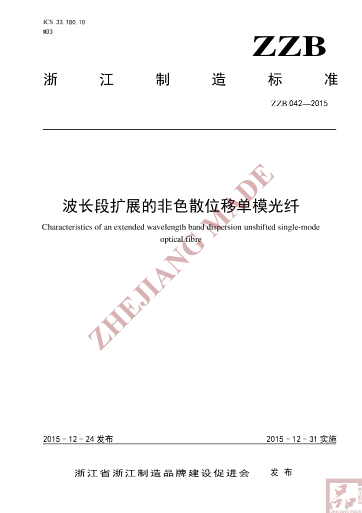 T/ZZB 042-2015 波长段扩展的非色散位移单模光纤