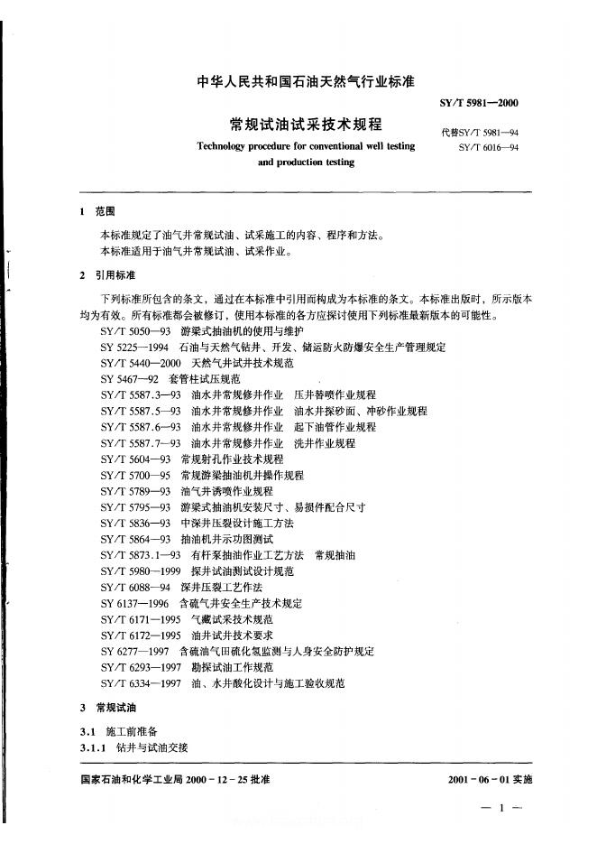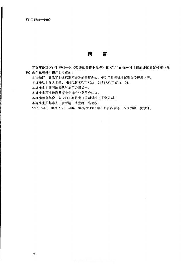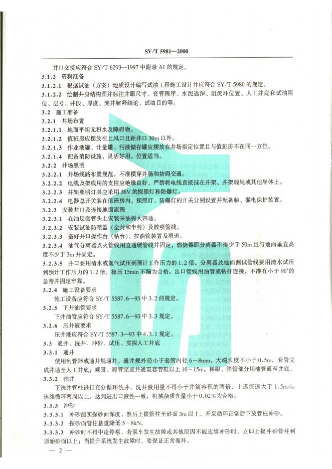SY/T 5981-1994 探井试油作业规程