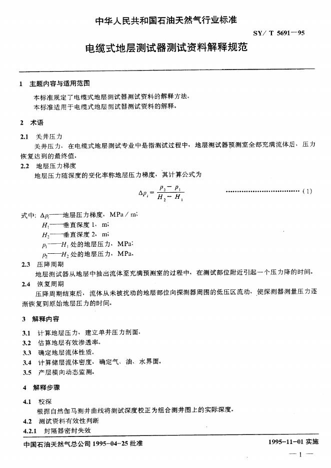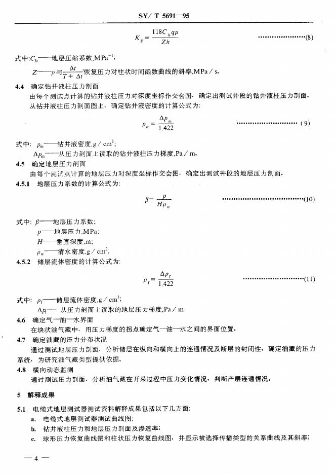 SY/T 5691-1995 电缆式地层测试器测试资料解释规范