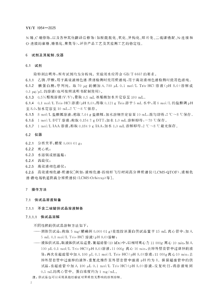 YY/T 1954-2025 重组胶原蛋白肽图指纹图谱分析