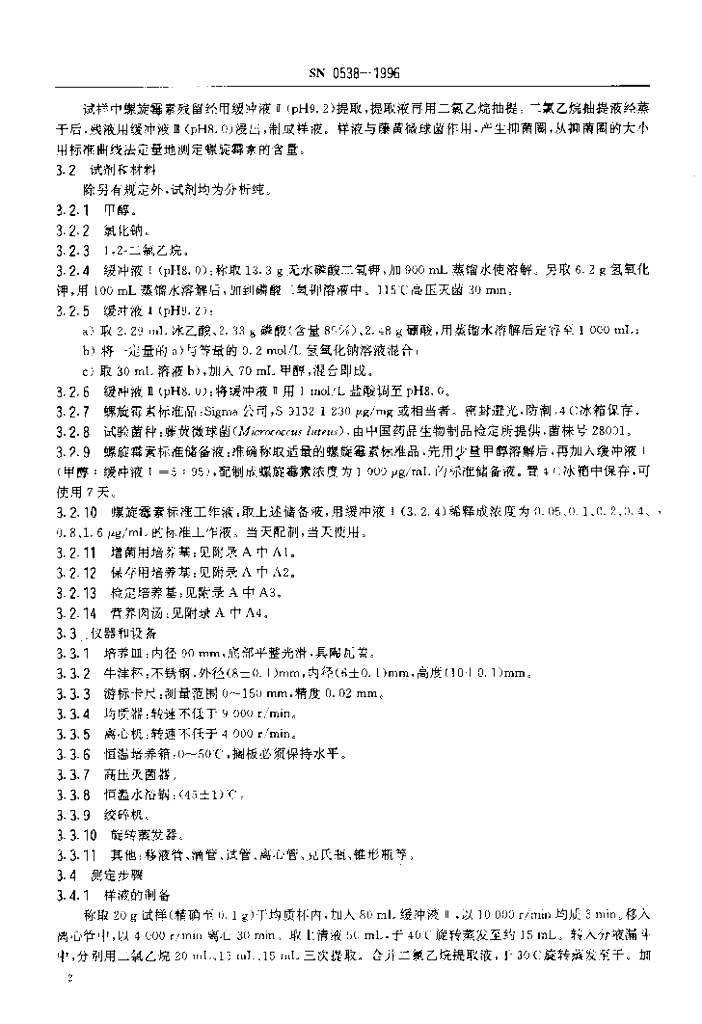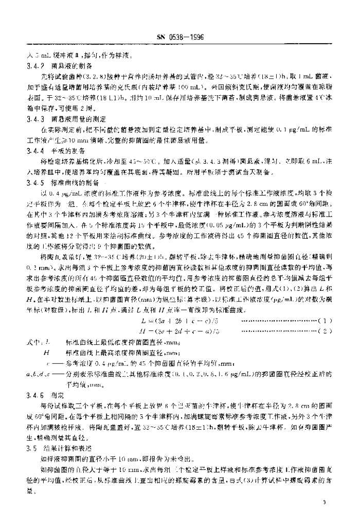 SN 0538-1996 出口肉品中螺旋霉素残留量检验方法 杯碟法
