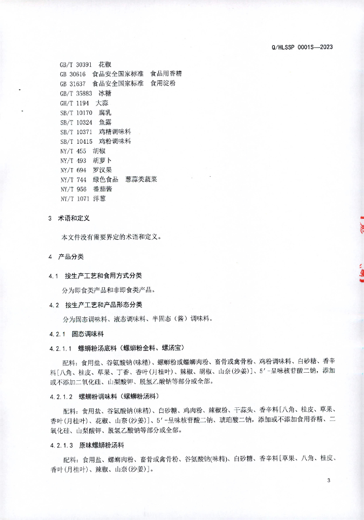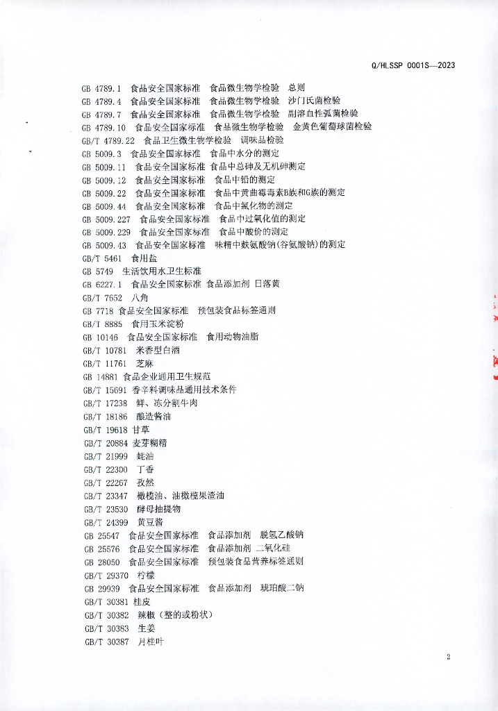 Q/HLSSP 0001S-2023 调味料