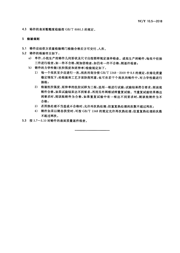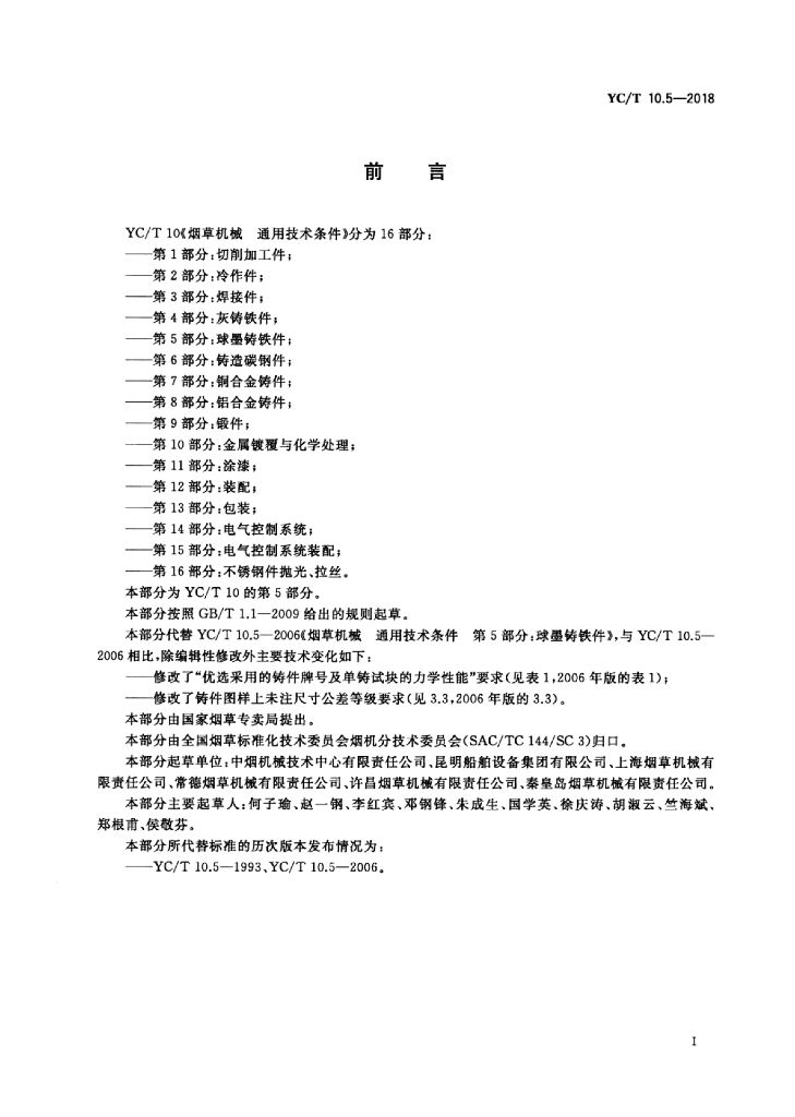 YC/T 10.5-2018 烟草机械通用技术条件 第5部分:球墨铸铁件