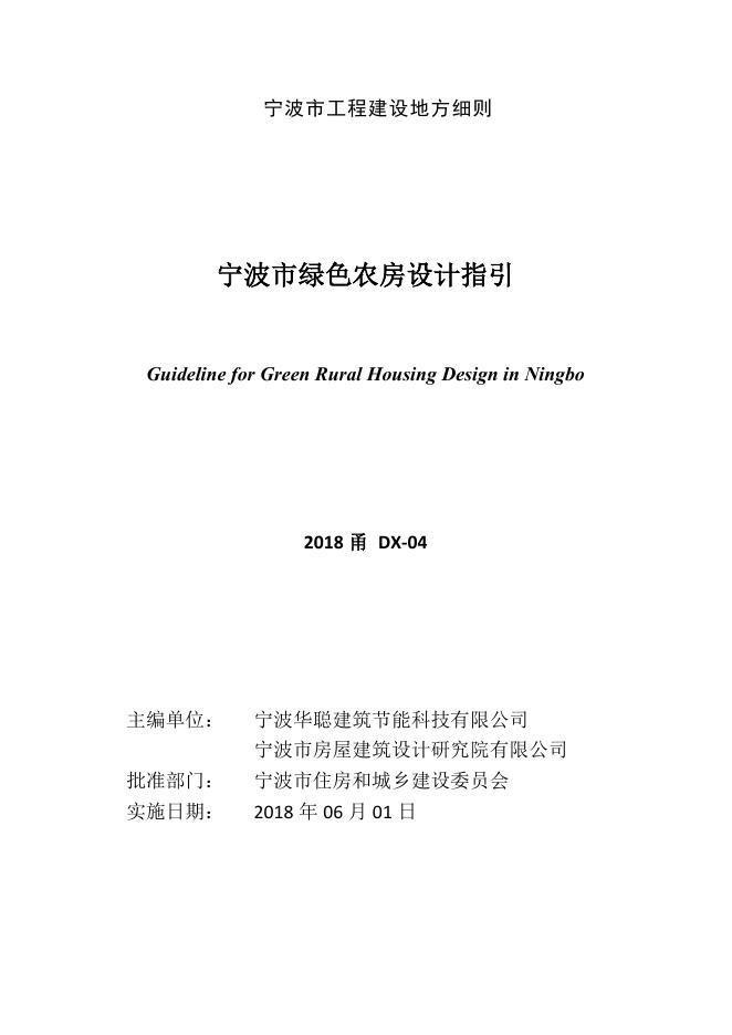 2018甬DX-04 宁波市绿色农房设计指引