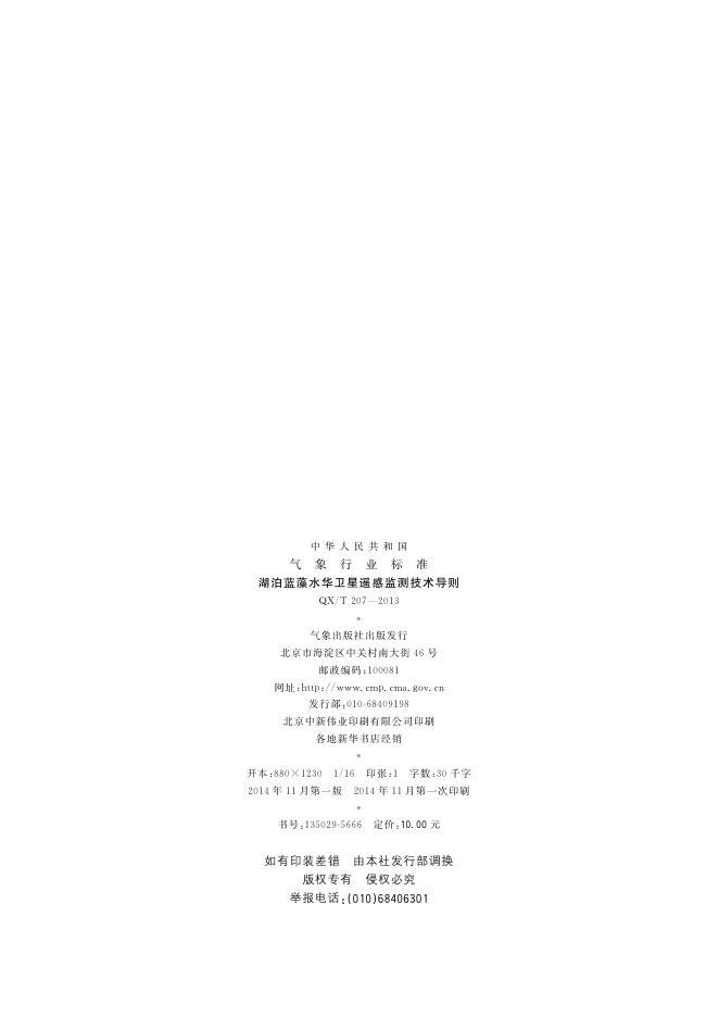 QX/T 207-2013 湖泊蓝藻水华卫星遥感监测技术导则
