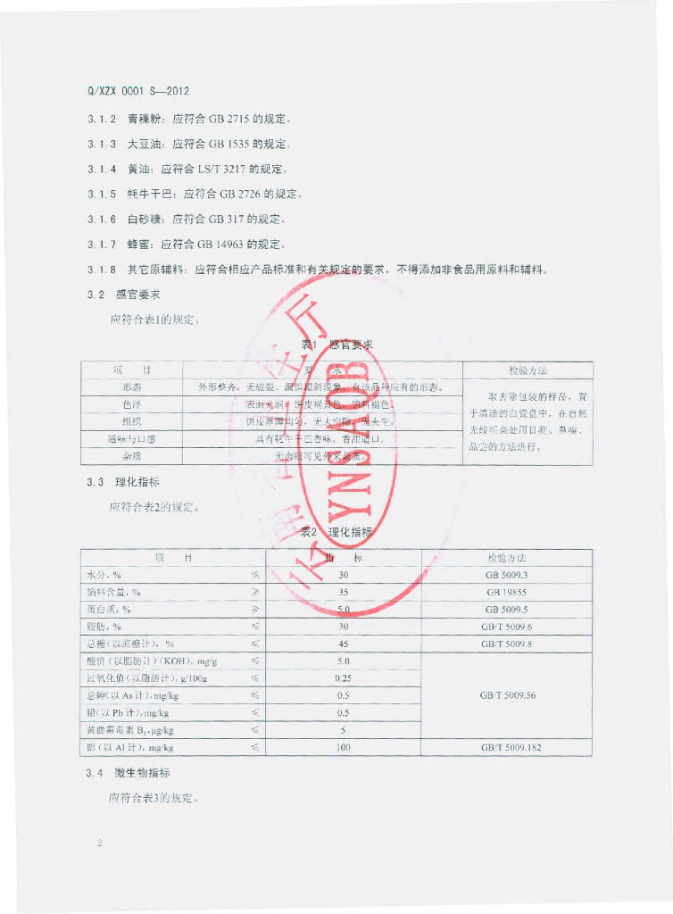 Q/XZX 0001S-2012 牦牛干巴青稞饼