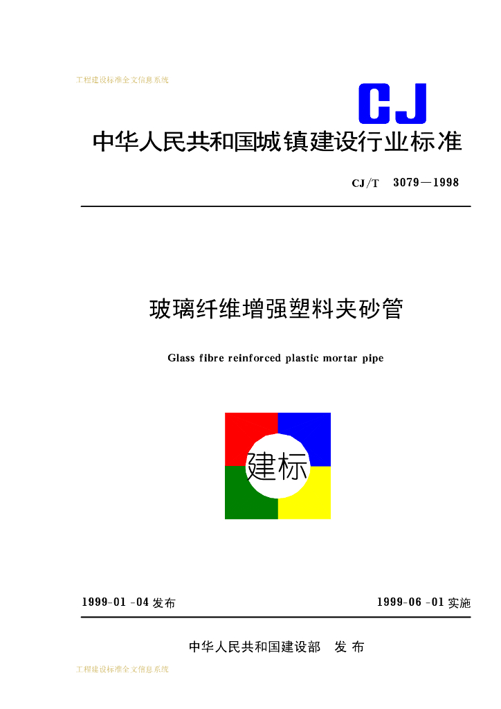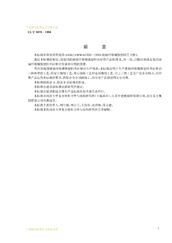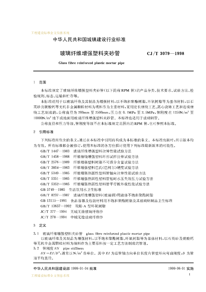 CJ/T 3079-1998 玻璃纤维增强塑料夹砂管