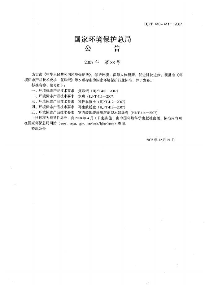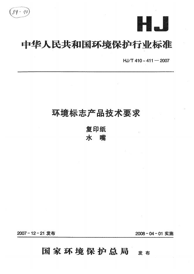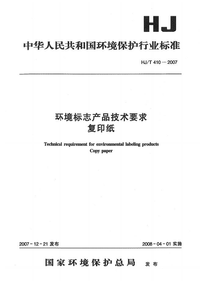 HJ/T 410-2007 环境标志产品技术要求 复印纸