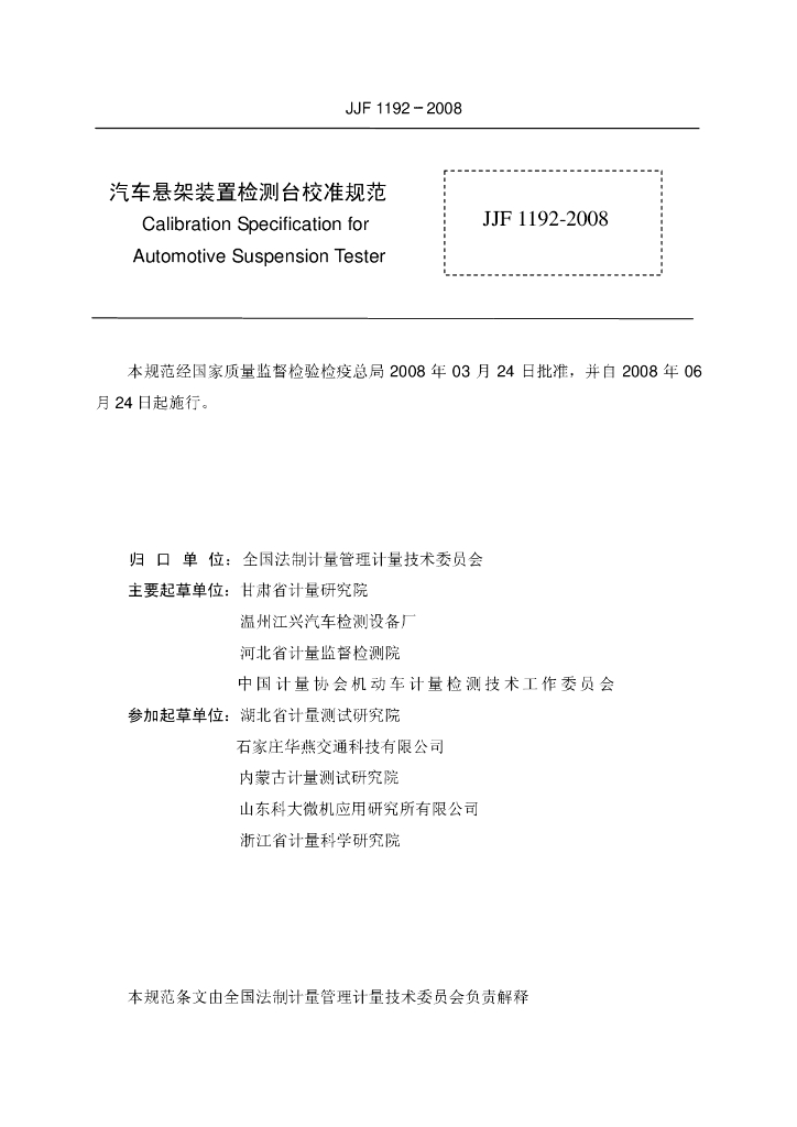 甘肃省计量研究院、温州江兴汽车检测设备厂、河北省计量监督检测院、中国计量协会机动车计量检测技术工作委员会、湖北省计量测试研究院、石家庄华燕交通科技有限公司、内蒙古计量测试研究院、山东科大微机应用研究所有限公司、浙江省计量科学研究院
