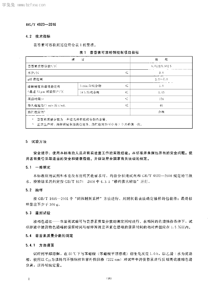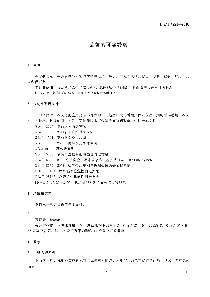 HG/T 4923-2016 芸苔素可溶粉剂