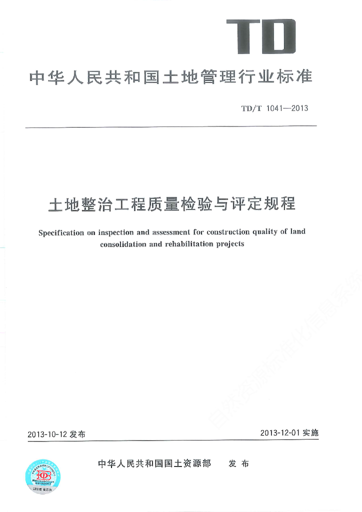 TD/T 1041-2013 土地整治工程质量检验与评定规程