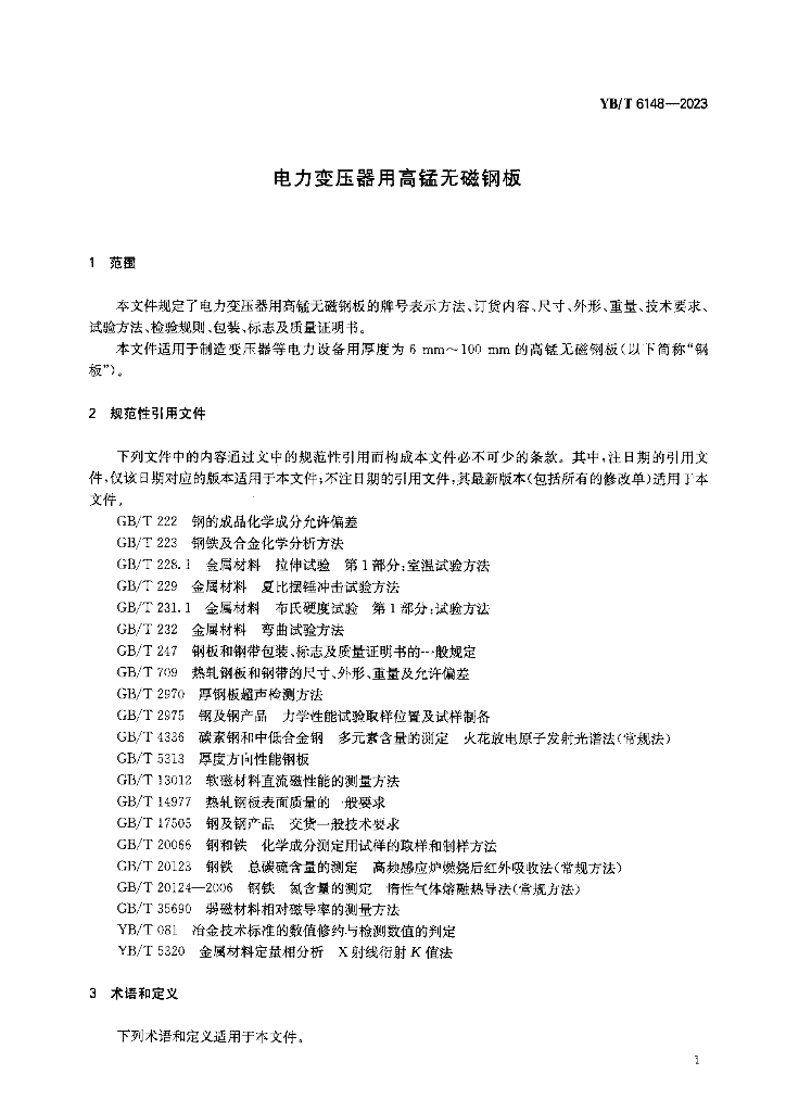 YB/T 6148-2023 电力变压器用高锰无磁钢板