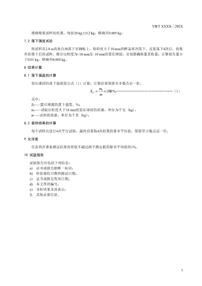 YB/T 6040-2022 萤石球团 落下强度的测定方法