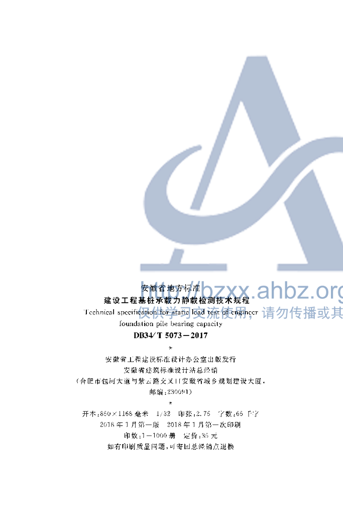 DB34/T 5073-2017 建设工程基桩承载力静载检测技术规程