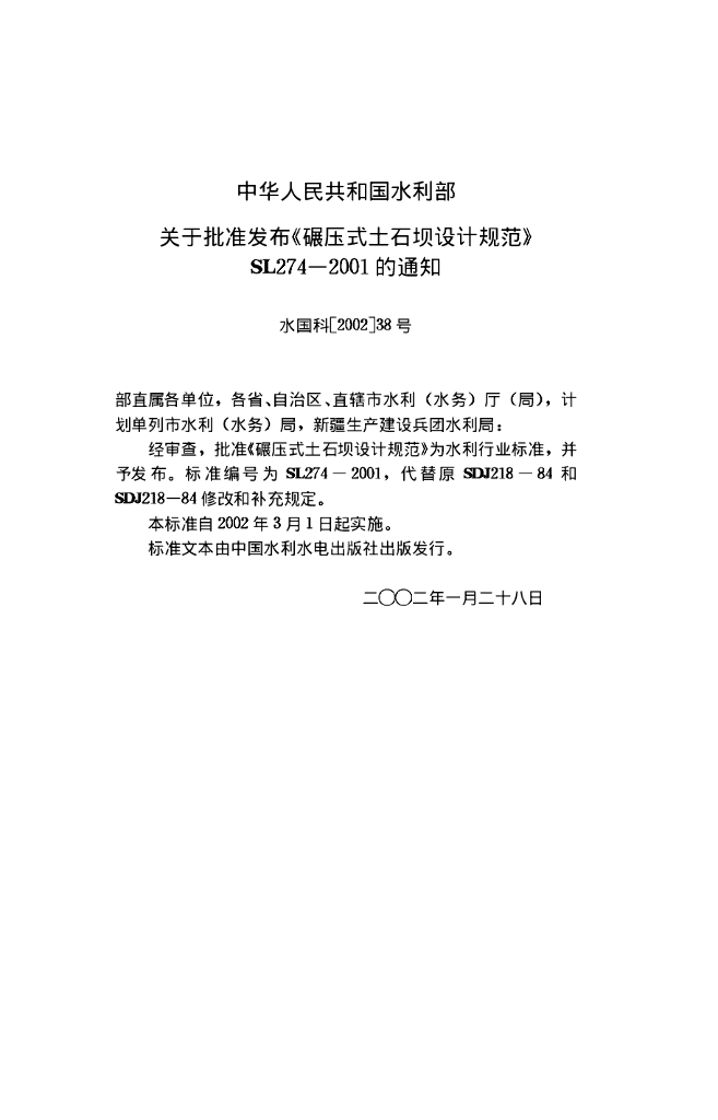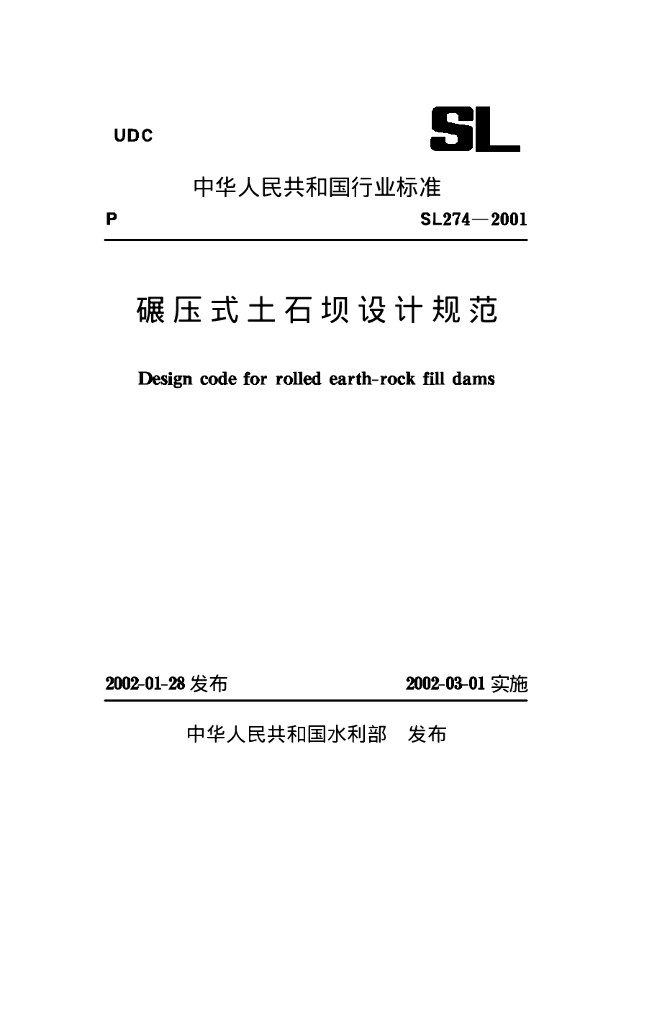 SL 274-2001 碾压式土石坝设计规范