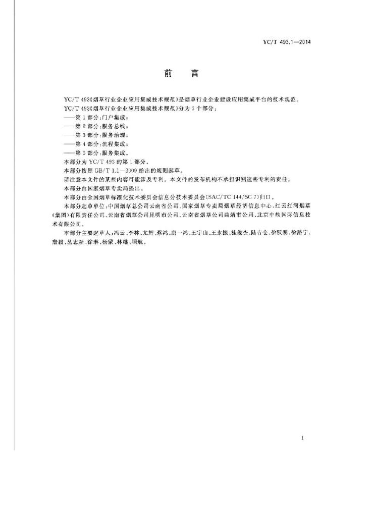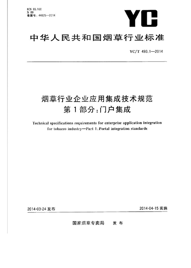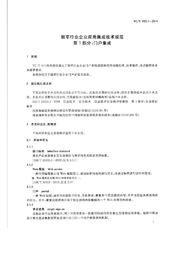 YC/T 493.1-2014 烟草行业企业应用集成技术规范 第1部分:门户集成