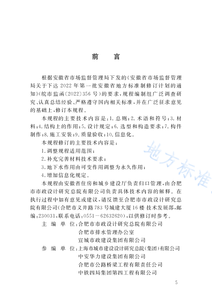 合肥市市政设计研究总院有限公司、合肥市排水管理办公室、宣城市政建设集团有限公司、上海市城市建设设计研究总院(集团)有限公司、中安华力建设集团有限公司、合肥市公路桥梁工程有限责任公司、中铁四局集团第四工程有限公司