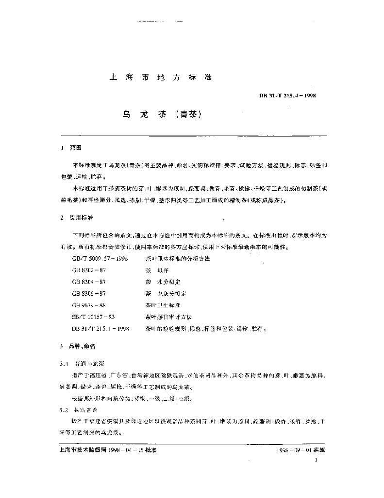 DB31/T 215.4-1998 乌龙茶(青茶)