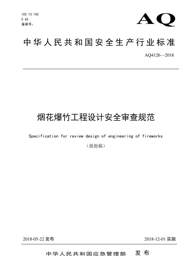 AQ 4126-2018 烟花爆竹工程设计安全审查规范
