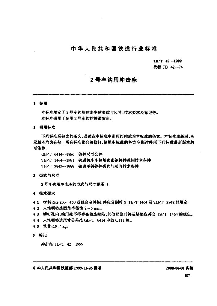 TB/T 42-1999 2号车钩用冲击座