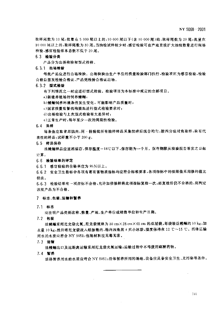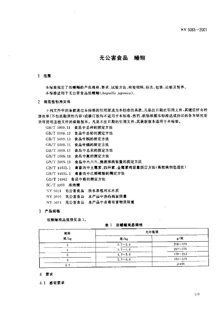 NY 5068-2001 无公害食品 鳗鲡
