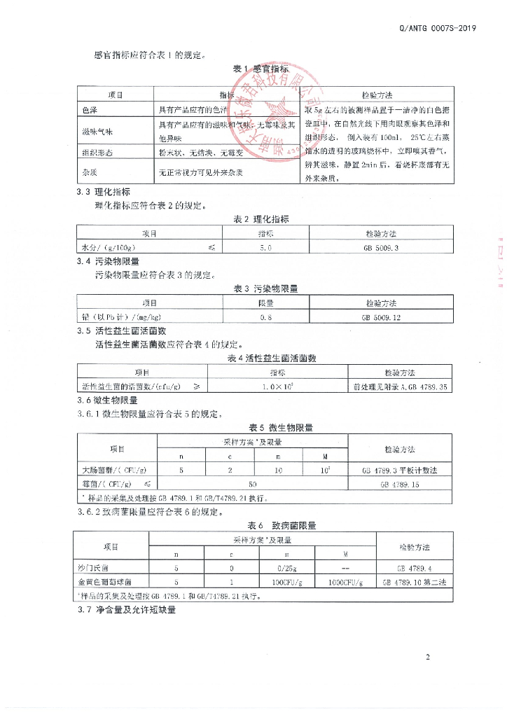 Q/ANTG 0007S-2019 益生菌固体饮料(II型)