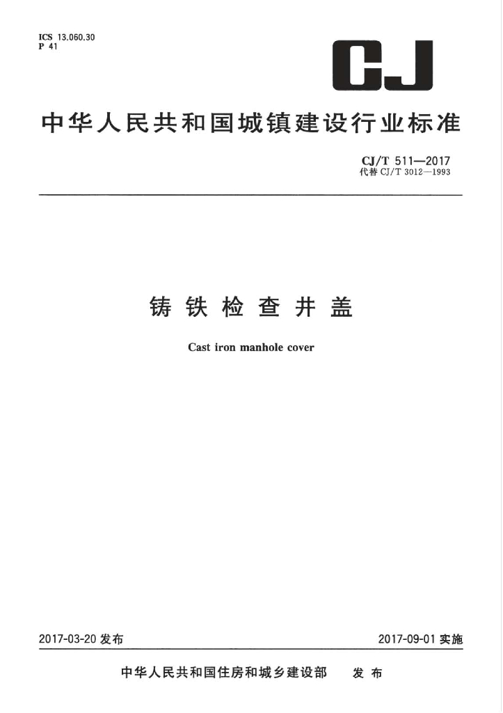 CJ/T 511-2017 铸铁检查井盖