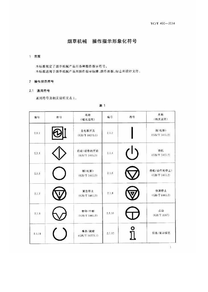 YC/T 490-2014 烟草机械 操作指示形象化符号
