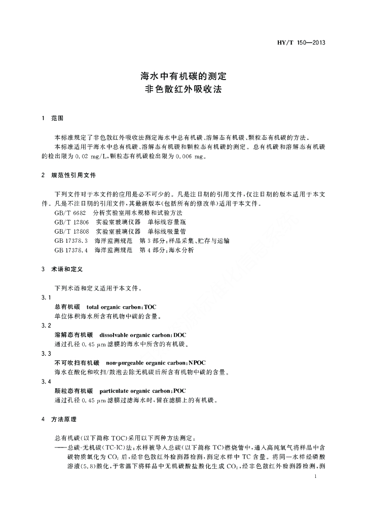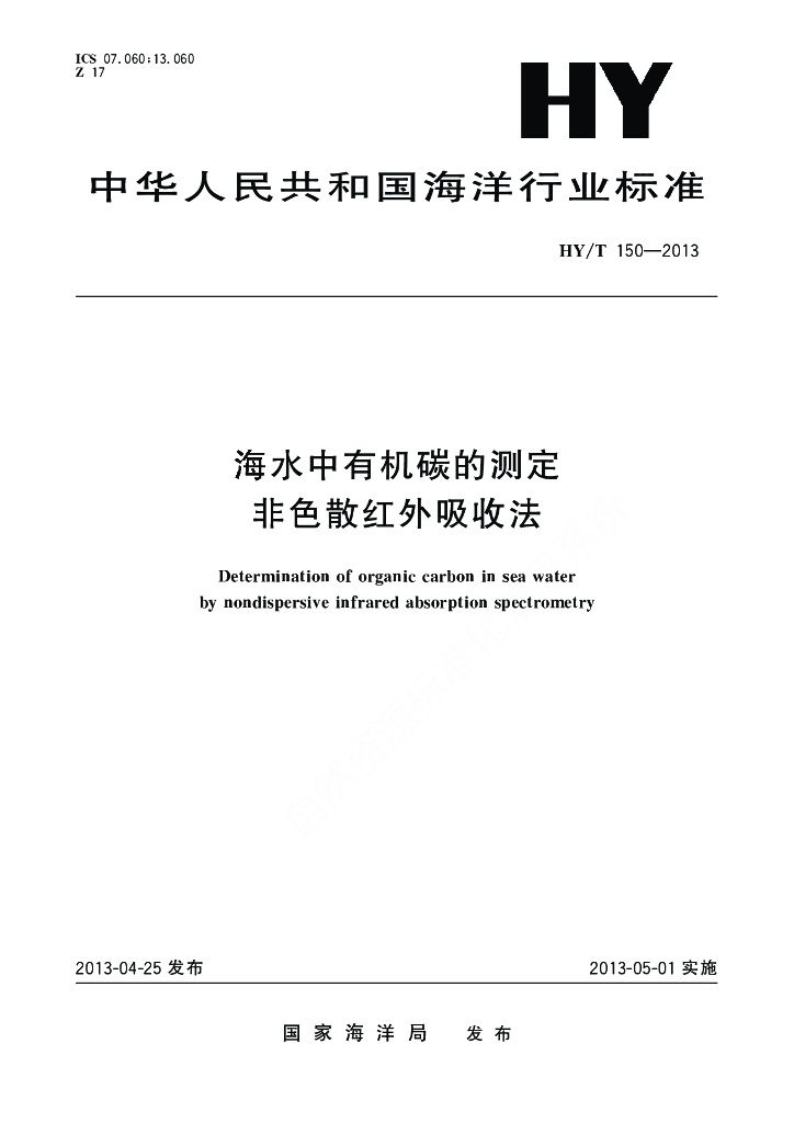 HY/T 150-2013 海水中有机碳的测定 非色散红外吸收法