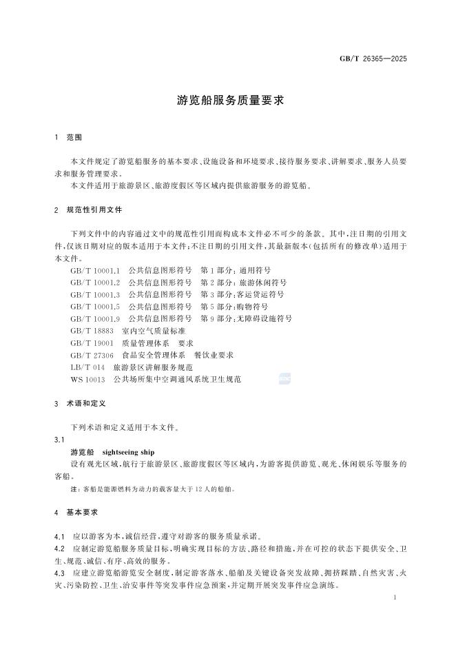 GB/T 26365-2025 游览船服务质量要求