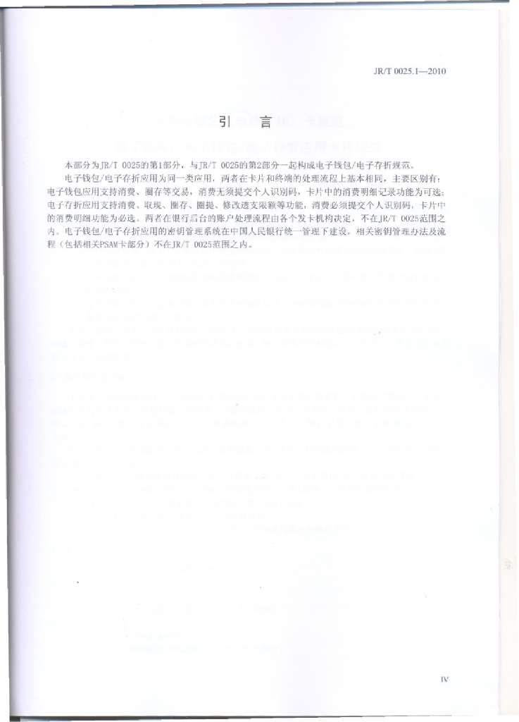 JR/T 0025.1-2010 中国金融集成电路(IC)卡规范 第1部分:电子钱包/电子存折应用卡片规范