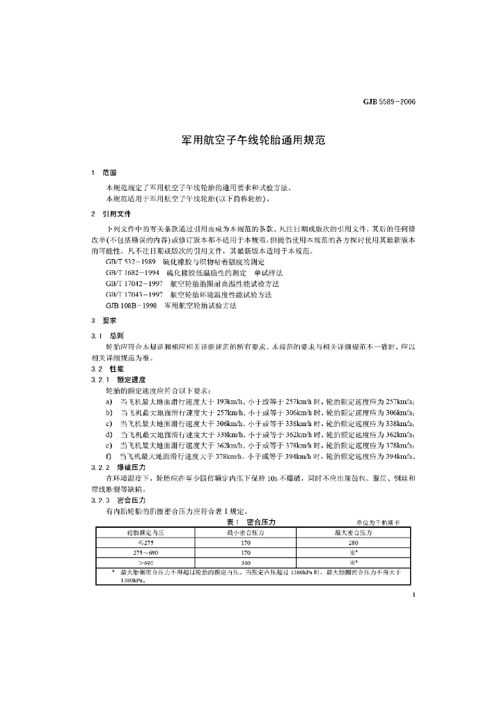 GJB 5589-2006 军用航空子午线轮胎通用规范