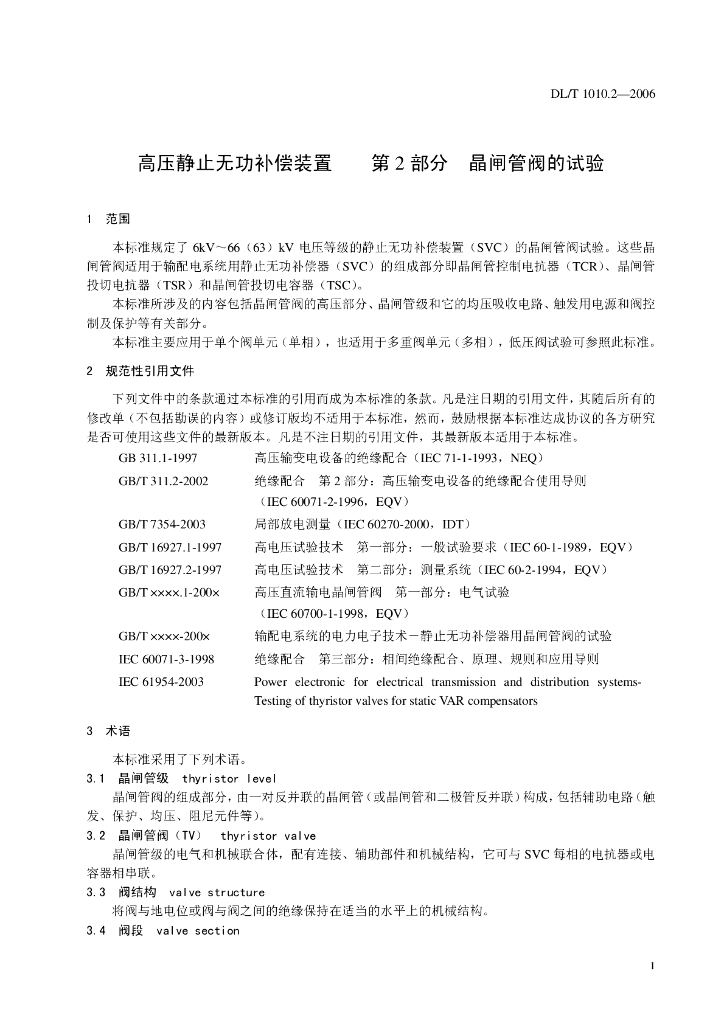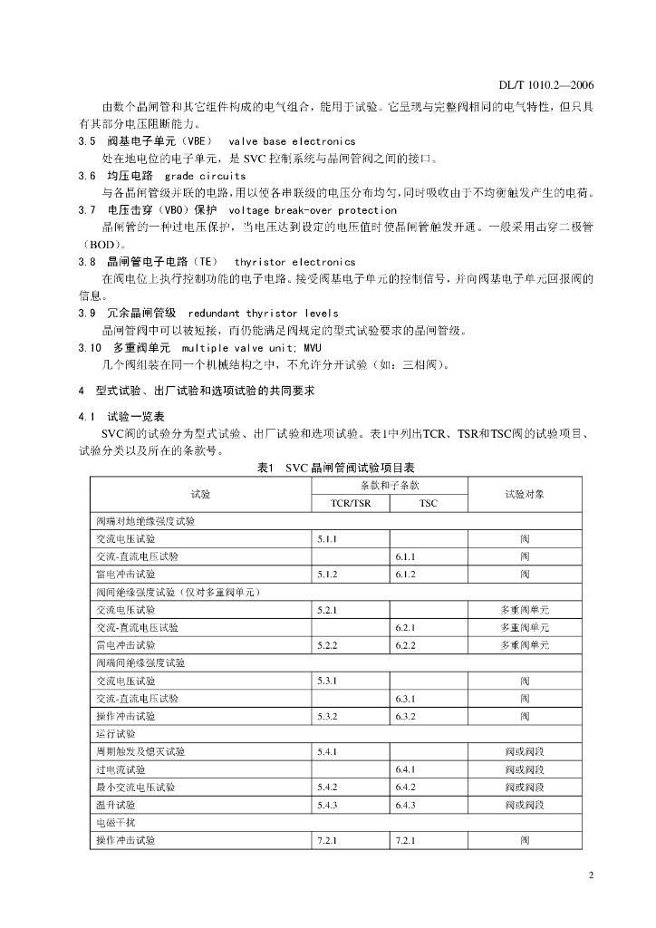 DL/T 1010.2-2006 高压静止无功补偿装置 第2部分:晶闸管阀的试验