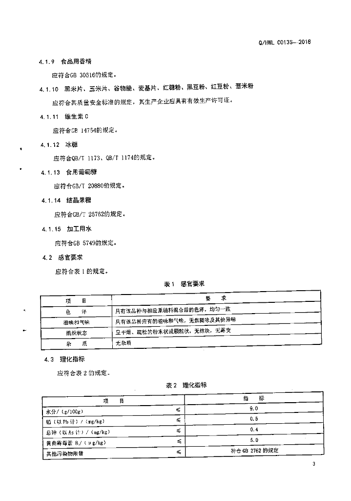 Q/HWL 0013S-2018 南方谷物粉