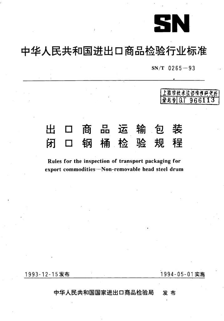 SN/T 0265-1993 出口商品运输包装闭口钢桶检验规程