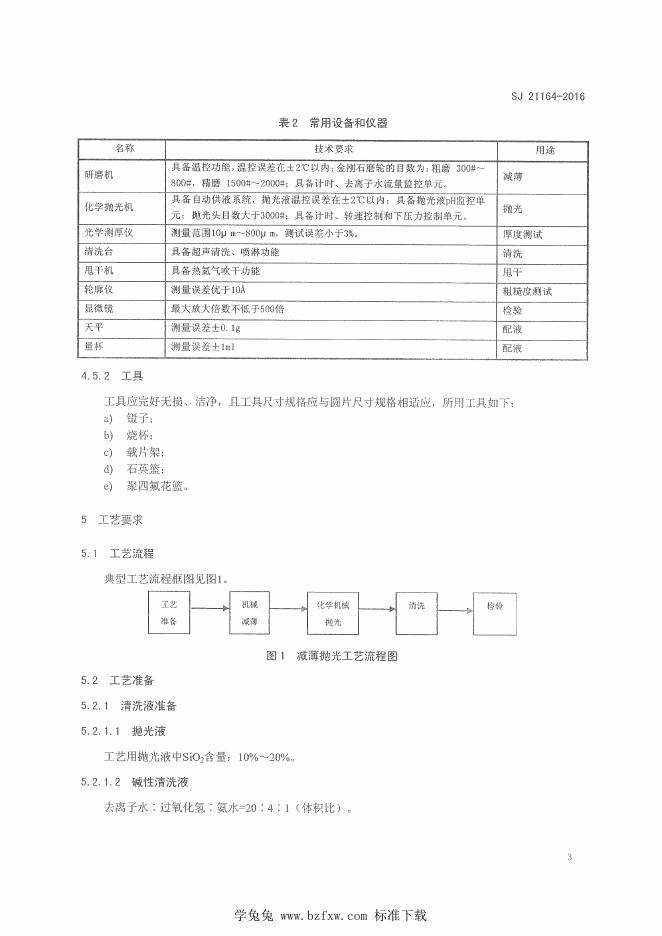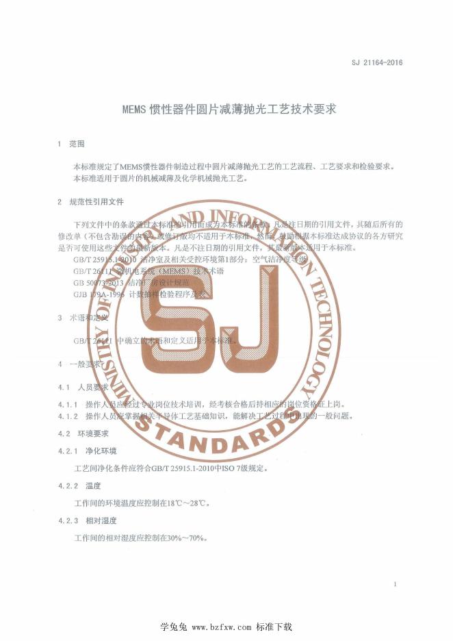 SJ 21164-2016 MEMS惯性器件圆片减薄抛光工艺技术要求