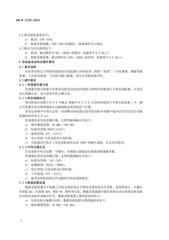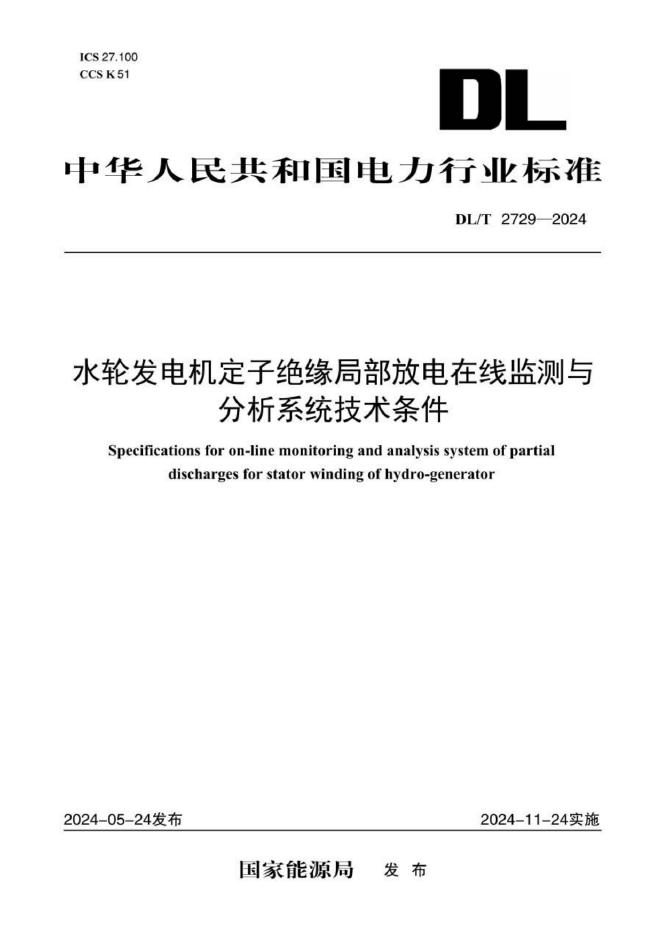 DL/T 2729-2024 水轮发电机定子绝缘局部放电在线监测与分析系统技术条件