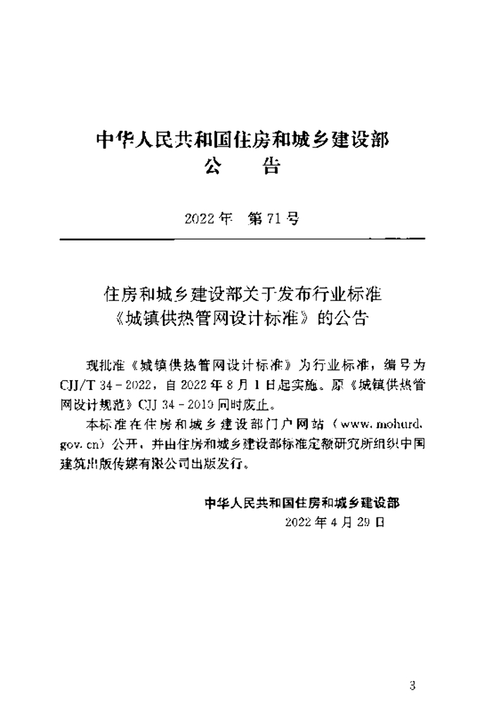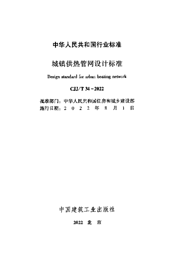 CJJ/T 34-2022 城镇供热管网设计标准