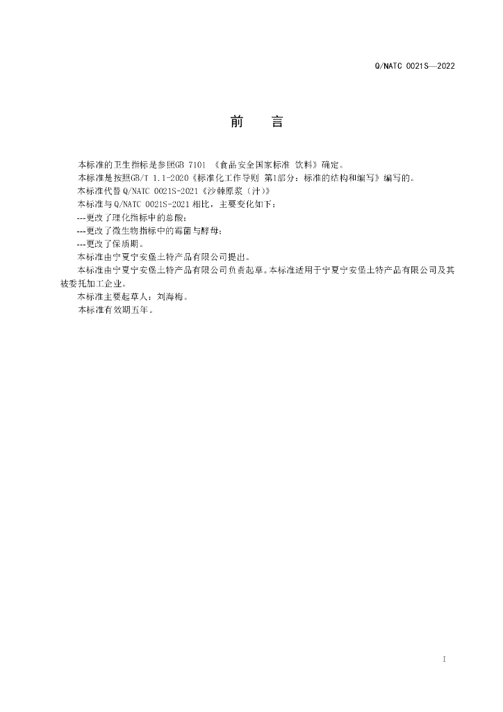 Q/NATC 0021S-2022 沙棘原浆(汁)
