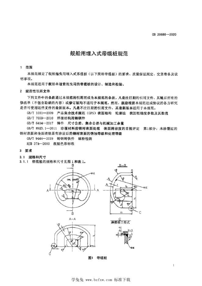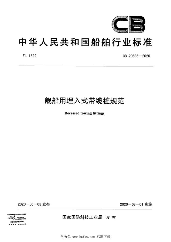 CB 20686-2020 舰船用埋入式带缆桩规范