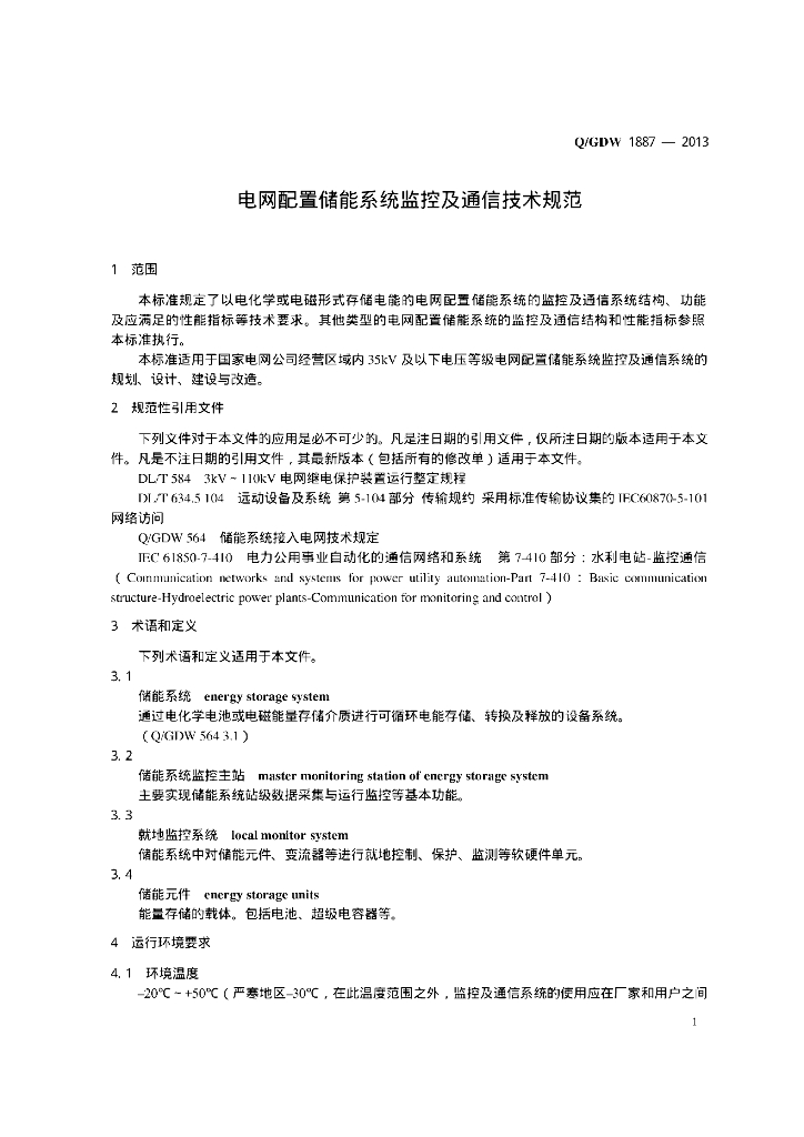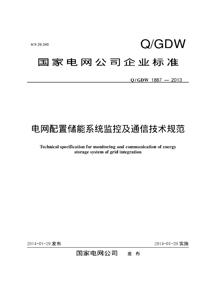 Q/GDW 1887-2013 电网配置储能系统监控及通信技术规范