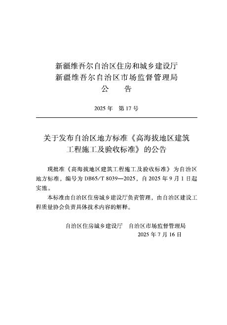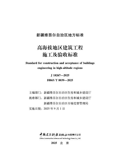 DB65/T 8039-2025 高海拔地区建筑工程施工及验收标准(无条文说明)