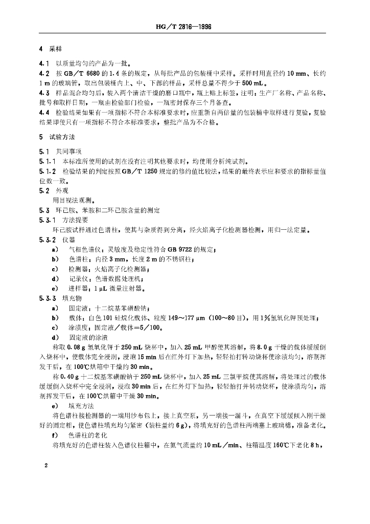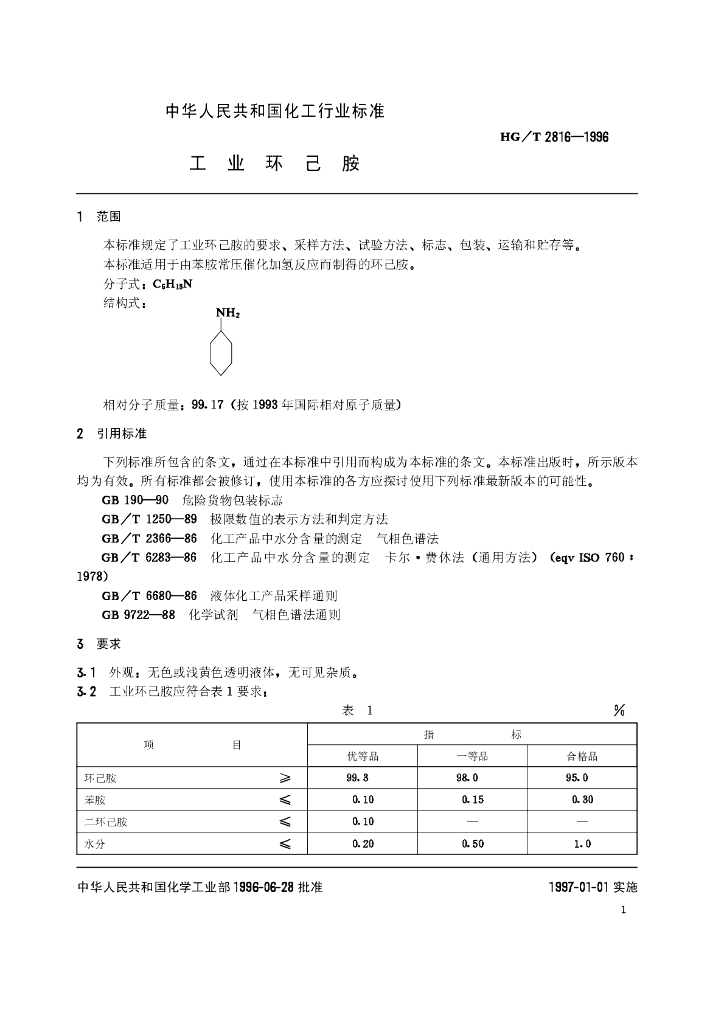 HG/T 2816-1996 工业环己胺