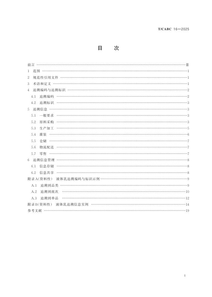 T/CABC 16-2025 基于GS1系统的液体乳追溯要求