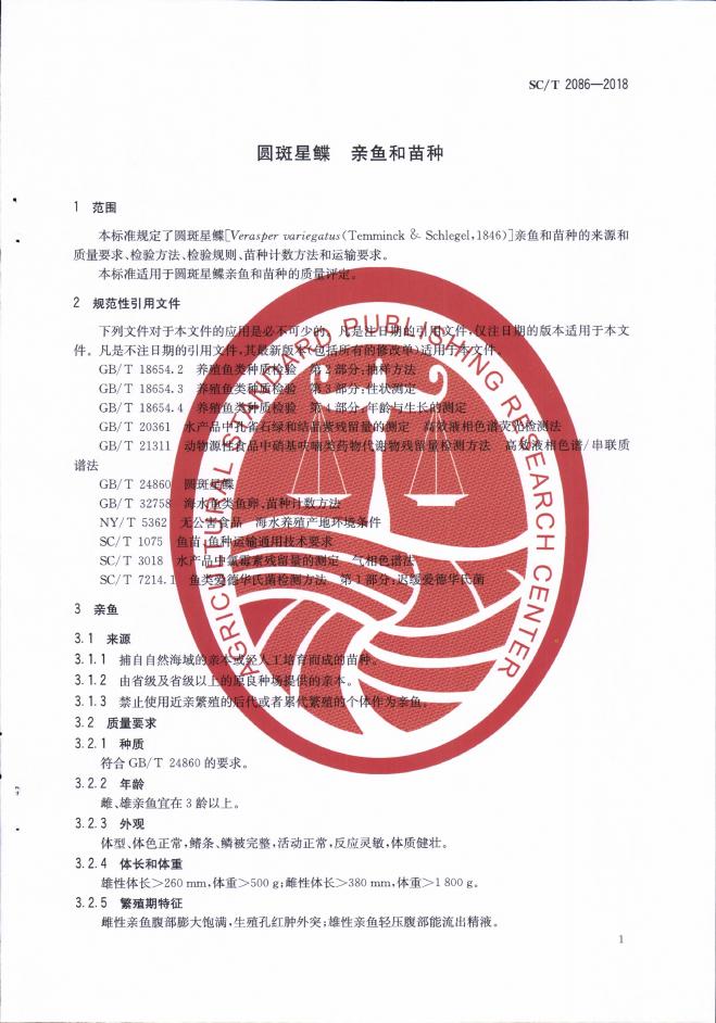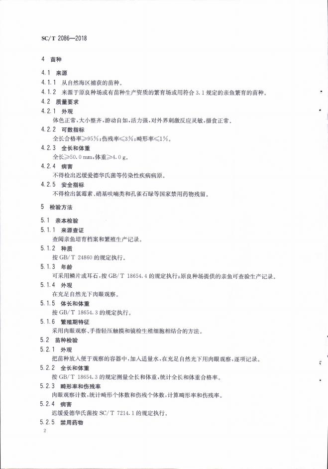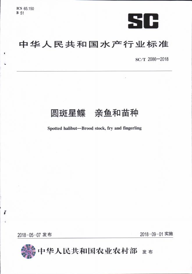 SC/T 2086-2018 圆斑星鲽 亲鱼和苗种
