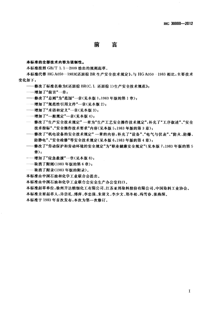 HG/T 30000-2012 还原棕BR(C.I.还原棕1)生产安全技术规范