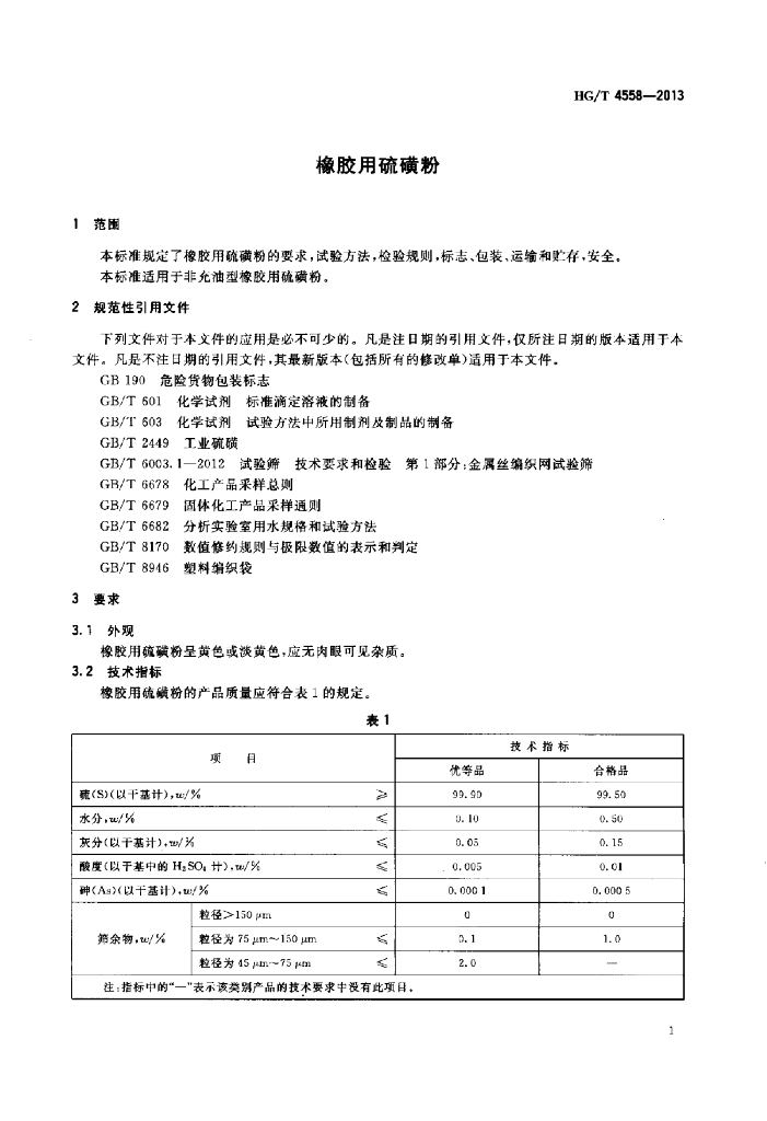 HG/T 4558-2013 橡胶用硫磺粉