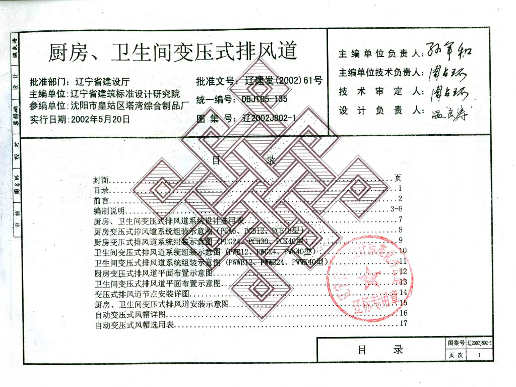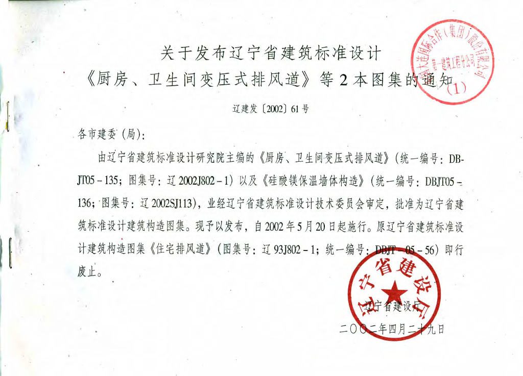 辽2002J802-1厨房、卫生间变压式排风道(辽宁省地方规范图集)
