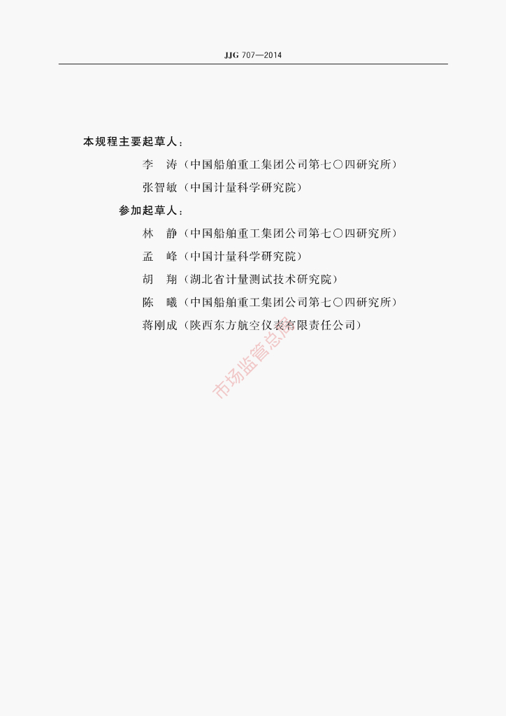 李涛(中国船舶重工集团公司第七O四研究所)、张智敏(中国计量科学研究院)、林静(中国船舶重工集团公司第七O四研究所)、孟峰(中国计量科学研究院)、胡翔(湖北省计量测试技术研究院)、陈曦(中国船舶重工集团公司第七O四研究所)、蒋刚成(陕西东方航空仪表有限责任公司)